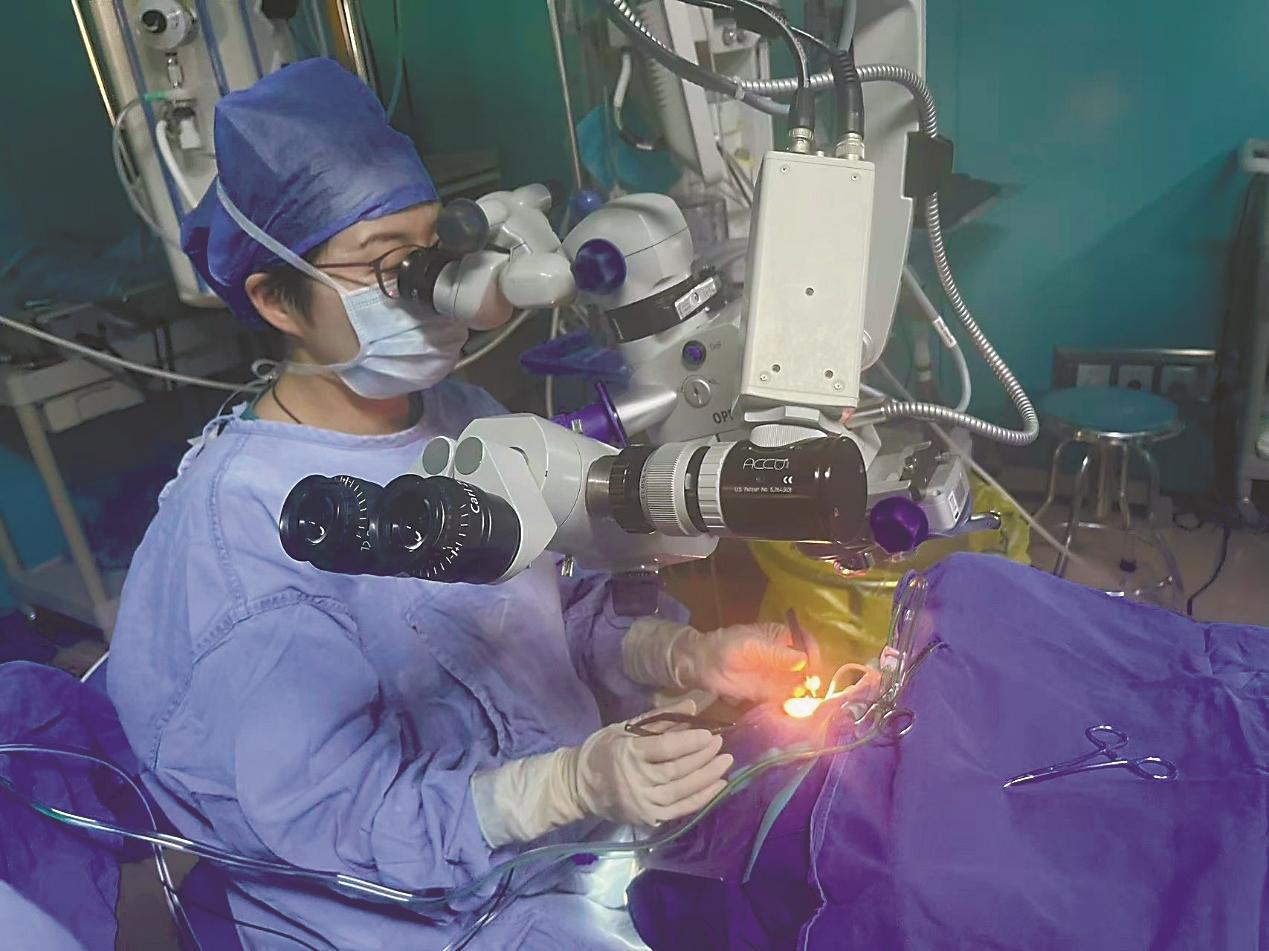 杨燕妮医生在眼底手术过程中。