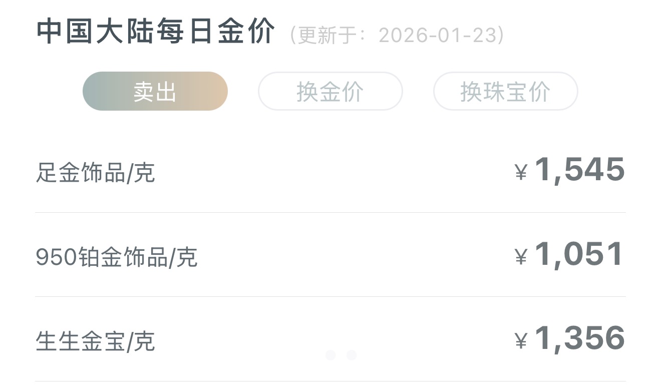 在此背景下,国内品牌金饰克价也同步走高,纷纷突破1500元/克。1月23日,老庙黄金报价1548元/克,单日上涨52元/克;周生生报价1545元/克,单日上涨53元/克;老凤祥为1538元/克,单日上涨43元/克。