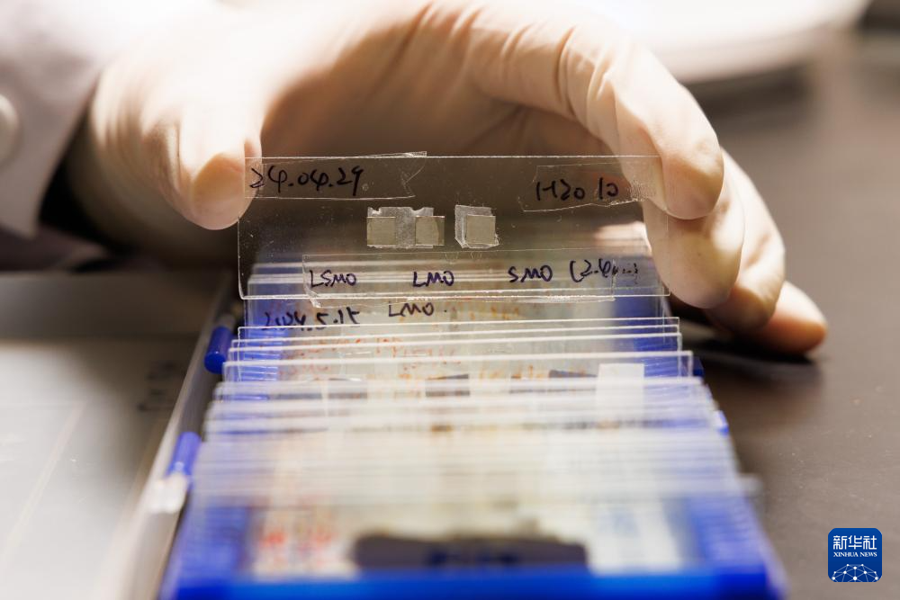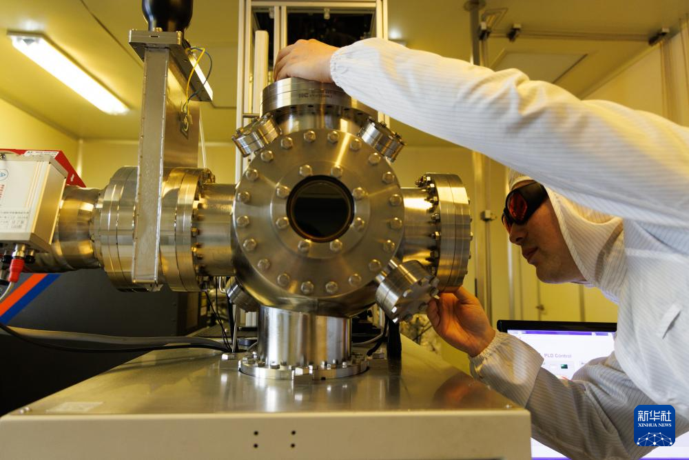 这是1月21日在中国科学院物理研究所实验室拍摄的正在进行实验的铁电薄膜样品。