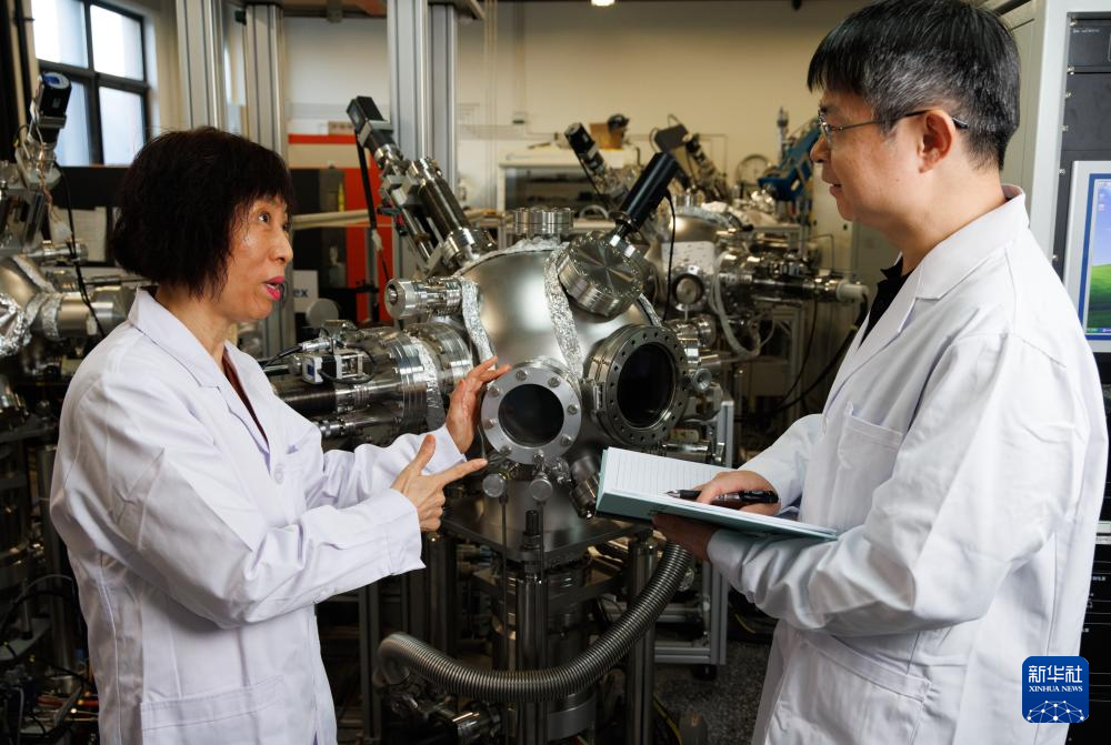1月21日,在中国科学院物理研究所实验室,金奎娟研究员(左)和葛琛研究员在讨论实验实施方案。