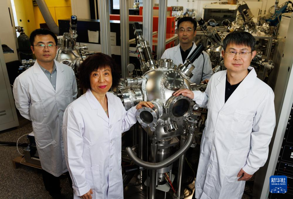 1月21日,在中国科学院物理研究所实验室,张庆华副研究员、金奎娟研究员、钟海博士后、葛琛研究员(从左至右)合影。
