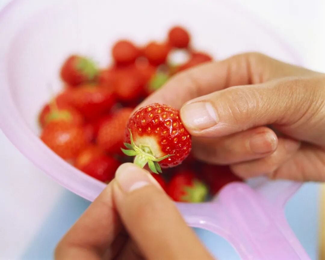 看:一要看草莓颜色,有些草莓全身通红,有些草莓屁股煞白,消费者应优先选择全身通红、均匀的草莓。二要看果蒂,草莓果蒂是翘着的且呈鲜绿色,就是自然成熟的,果蒂发黄的是成熟度不好的。三要看草莓表面的果籽,普遍呈金黄色状态的草莓是自然成熟的。