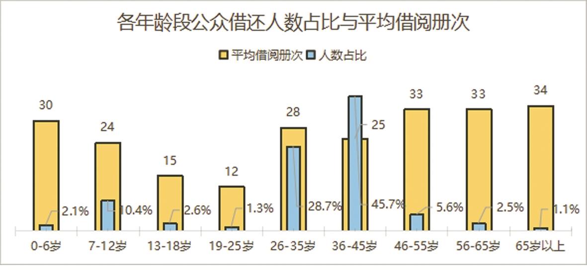 从平均借阅册次来看,46岁以上读者平均借阅超33册,0岁—6岁小读者平均借阅30册,26岁—45岁家长读者则以高到访率、高借阅量成为中坚力量,7岁—12岁小读者更是展现出强劲的阅读潜力。