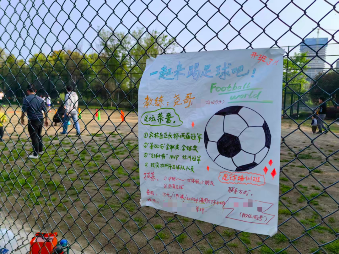 聊天尾声,程女士把手机伸到我面前,一位小区家长正在和程女士约尧哥周末的足球课,“喏,有小区邻居看到我的帖子找到我,尧哥又要忙起来咯!”