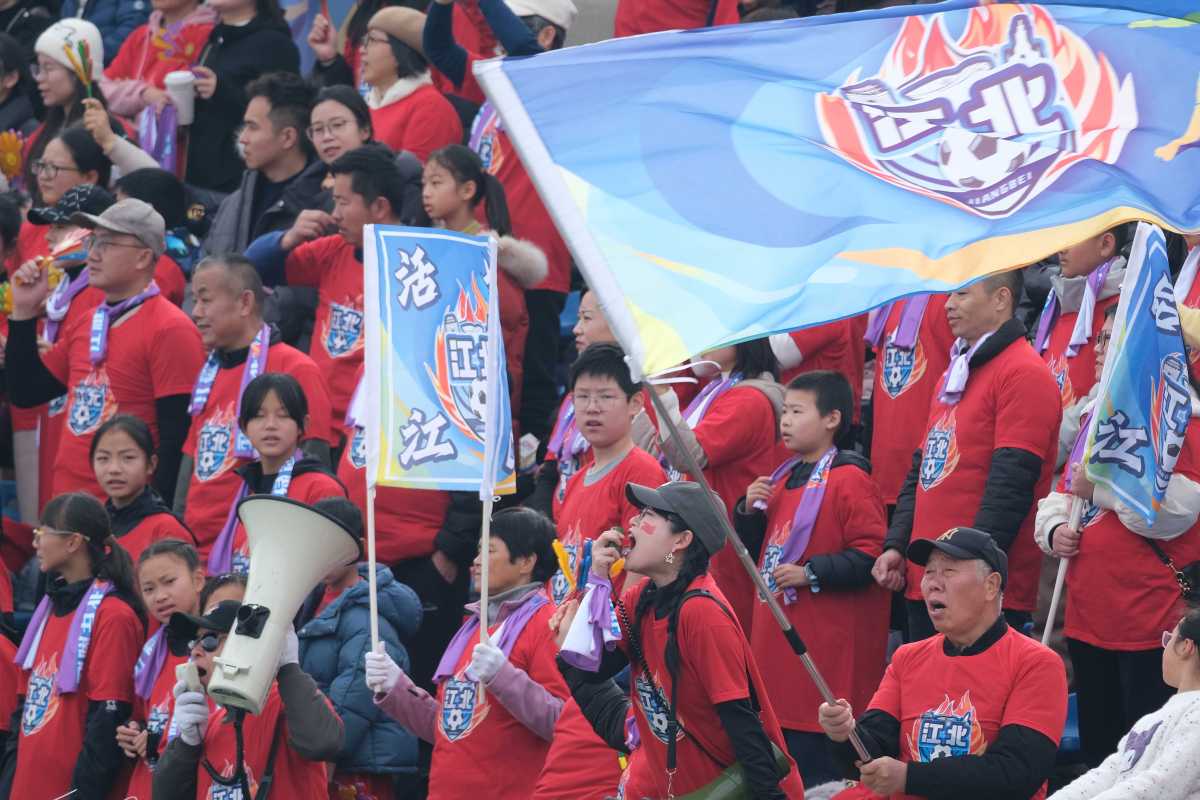 看台上助威的球迷。记者 崔引 摄