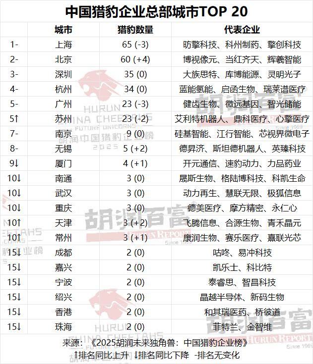 胡润研究院今日发布《2025胡润未来独角兽:中国猎豹企业榜》,榜单列出了中国成立于2000年之后,五年内(即到2030年底)最有可能达到独角兽级十亿美元估值的高成长型企业。共有42家浙江企业上榜,其中杭州有34家。