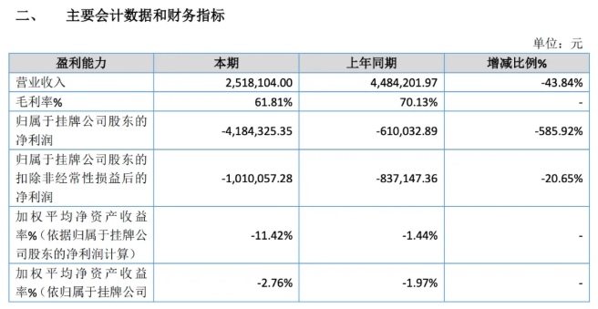六智信息是一家新三板挂牌公司,上市时间为2016年3月。根据公司2025年半年度报告,其2025上半年实现营收251.81万元,同比下降43.84%;归母净利润为-418.43万元,同比扩大585.92%。此前的2022-2024年,六智信息营收连年下滑,净利润也均处于亏损状态,分别亏损917.26万元、244.70万元、196.29万元。