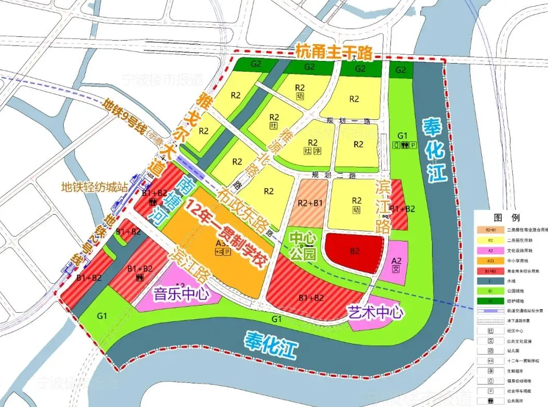 本次拟拓宽河段西起雅源北路、终至杭甬高速,全长约1.23公里。全段位于以“现代化滨海大都市滨水时尚湾”为发展目标的丁家街区内。
