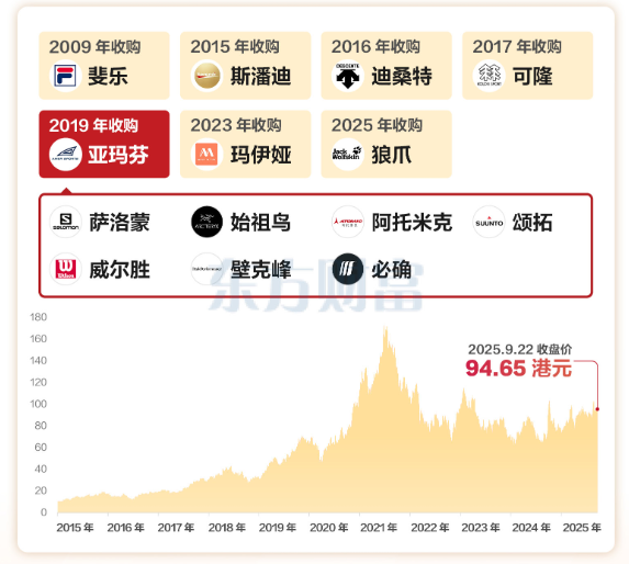 专业运动矩阵:以迪桑特(DESCENTE)、可隆(KOLON SPORT)、玛伊娅(MAIA ACTIVE)及新收购的狼爪(JACK WOLFSKIN)等品牌构成的专业运动板块,是集团增长最快的部分。其中迪桑特和可隆表现尤为亮眼,2025年上半年所有其他品牌合计营收暴涨61.1%至74.1亿元,迪桑特更在2025年成为又一个百亿级品牌。