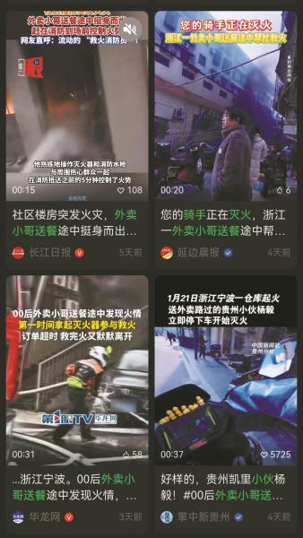 这几天,送餐途中“逆行”救火的外卖小哥杨毅经过宁波晚报等宁波媒体报道后,引发舆论关注。央视新闻、人民网、新华社、国家应急广播、工人日报、中国消防、山西广播电视台、山东交通广播、美丽浙江、武汉发布等官方媒体纷纷转发这条救火视频,全网流量已破亿。这个22岁的贵州小伙子也成为大众津津乐道的救火英雄。