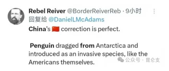 不少外国媒体人纷纷转发。一位叫Rebel Reiver的网友说:“中国(媒体)的这版二创真是完美。企鹅一路被强行从南极洲拖到格陵兰,成为当地入侵物种,反映的正是美国自身。”