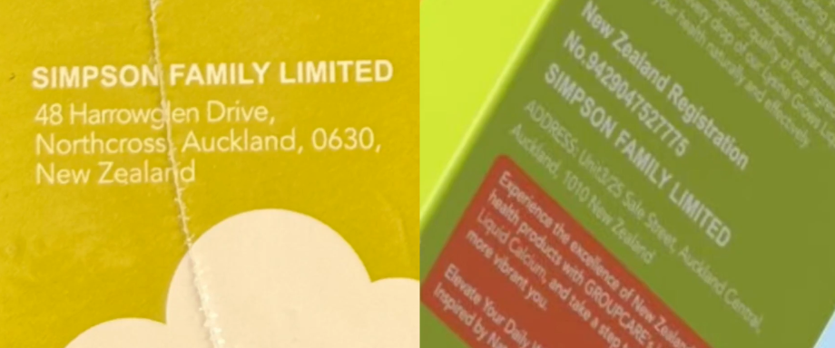 从溯源信息来看,两个产品都是从保税仓发货,而且有完整的报关单。产品包装盒上面是全英文标签,生产企业是新西兰的Simpson Family Limited,企业地址也在新西兰。记者注意到,在官方旗舰店产品宣传页上,却是另一个地址。
