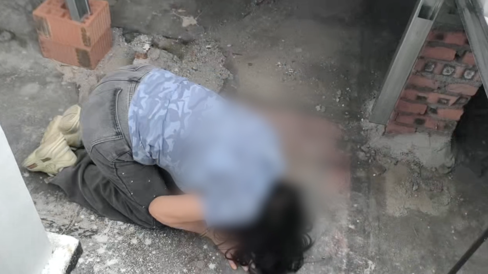 犯罪嫌疑人陈某芬回到泸州指认现场时,向被害人忏悔。(泸州公安供图)