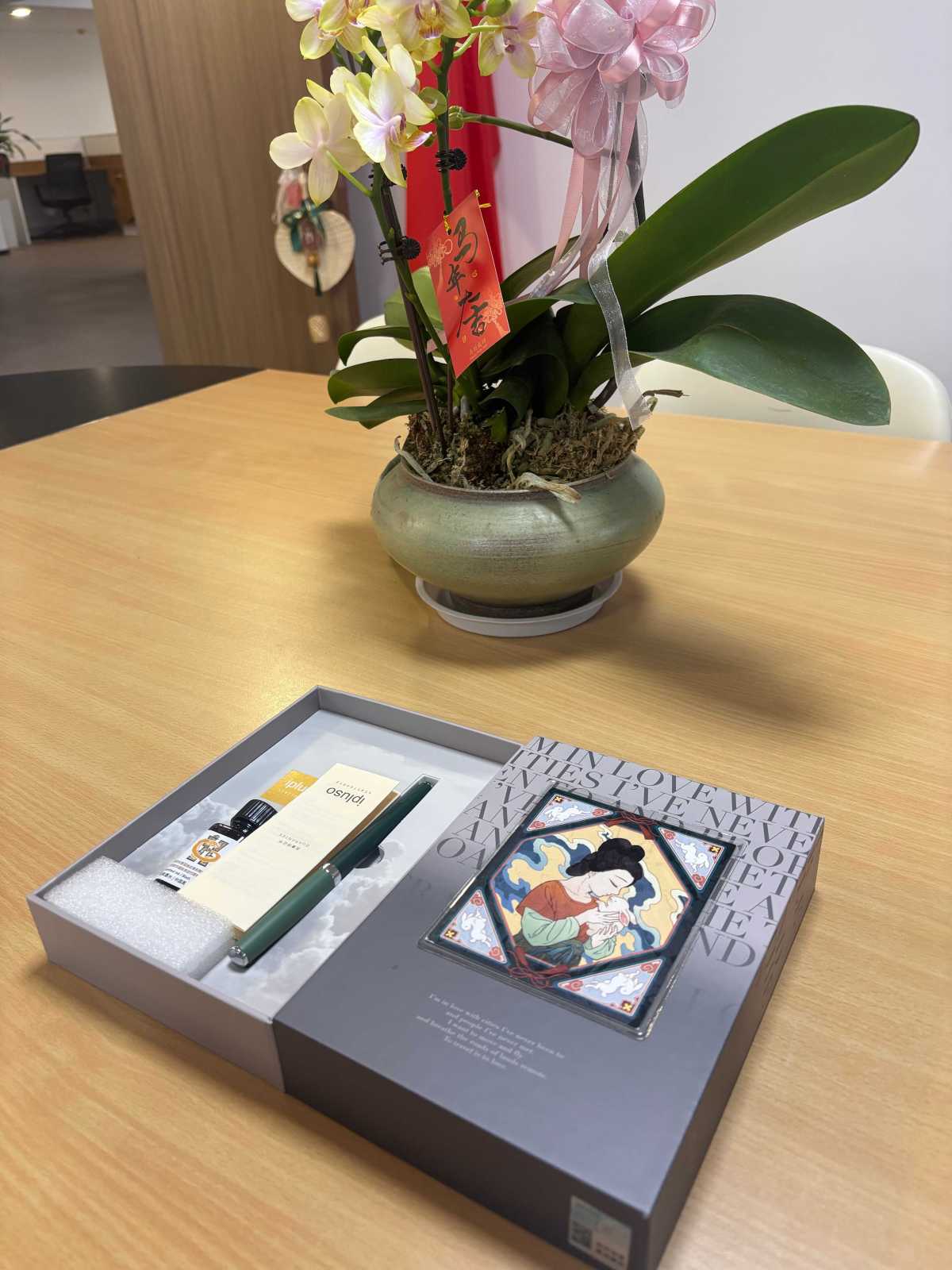 当她将一套文创伴手礼递到海外客户手中时,对方当即眼前一亮,指尖摩挲着杯垫上灵动的斑鸠图案,连连用中文赞叹:“太特别了!这图案栩栩如生!”