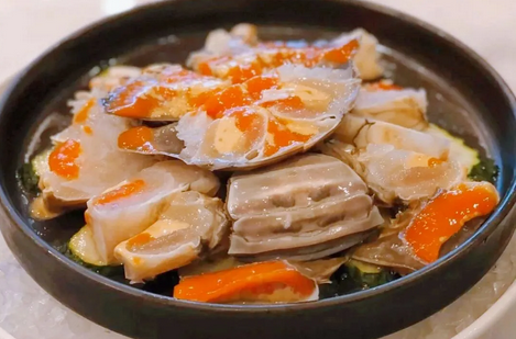 红膏呛蟹的制作,蕴含着宁波渔家的智慧。冬日北风渐起,梭子蟹膏满黄肥。宁波人为了留住这转瞬即逝的肥美,以海盐与黄酒为料,对鲜活的膏蟹进行“封存”。一个“呛”字,就生动地道出了其做法的精髓,用浓烈的咸与酒,瞬间“呛”住蟹的鲜味,使其在短时间内凝固、入味,也为独特的口感打下基础。