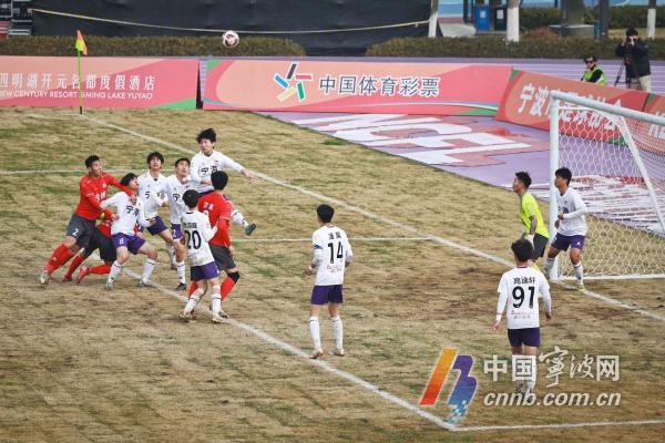 下半场宁海队继续加强攻势。第47分钟,宁海队高逸轩禁区内做球,潘昊的小角度射门擦门而出。之后,宁海队发起多次威胁进攻,但是余姚队防守非常顽强,反击也打得有声有色。第88分钟,余姚队反击,陈诺过掉门将射空门得手,把比分改写成3:1。补时阶段,朱私洋罚进自己制造的点球,将比分锁定在4:1。
