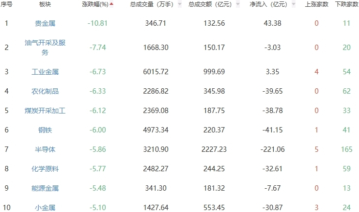 板块方面,白酒、电网设备板块涨幅居前,贵金属、油气开采及服务、工业金属等板块跌幅居前。