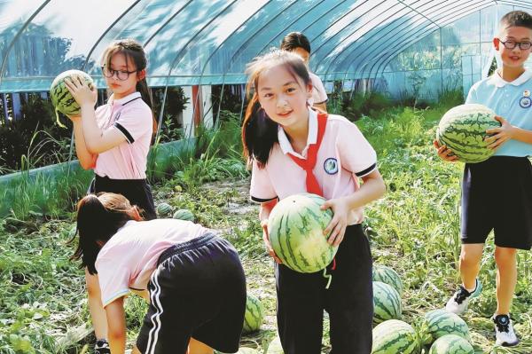 夏天,学生种的西瓜迎来大丰收。