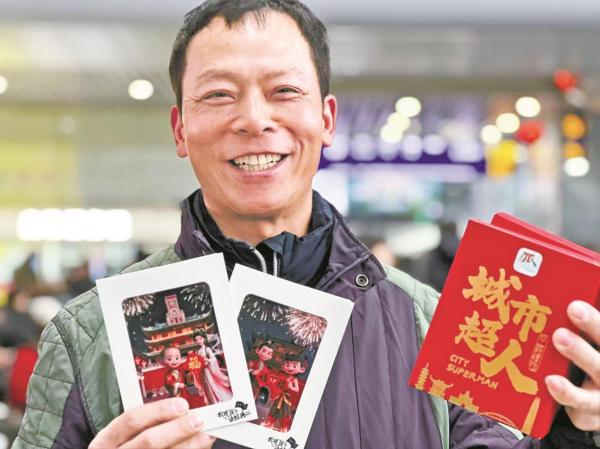 在铁路宁波站,本报携多家单位的志愿者为返乡的“城市超人”送上满载宁波心意的礼包。(甬派客户端宁波日报 仇龙杰 张璐 钟海雄 摄)