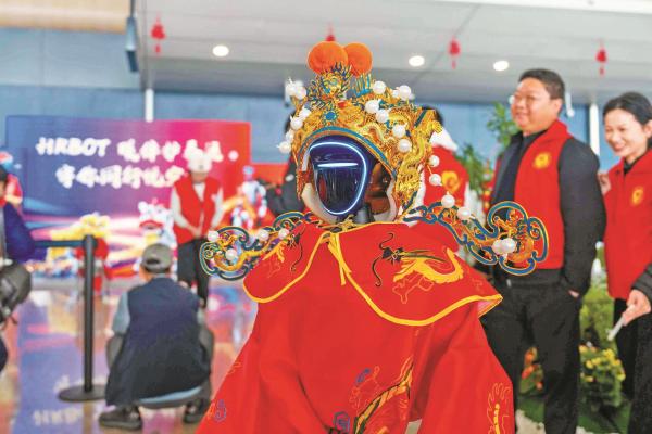在宁波机场候机楼,憨态可掬的机械“财神”与灵动翻腾的机器狗“舞狮”队为南来北往的旅客献上别开生面的科技拜年表演。 (甬派客户端宁波日报 徐能 沙燚杉 摄)