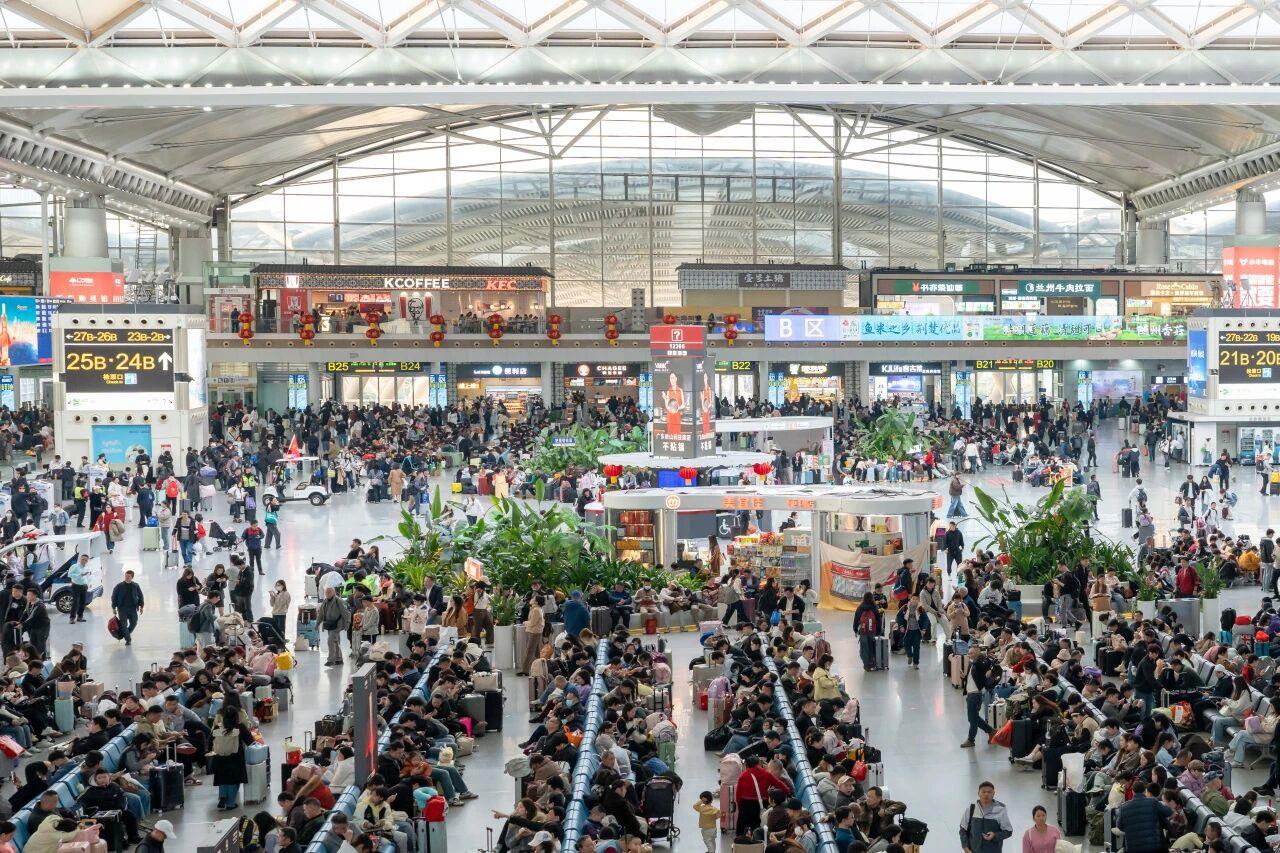 春运期间,部分车站高峰时段客流较大,请及时关注天气变化情况和出行服务信息,预留充足时间进站乘车,严格按规定携带随身物品,按照票面发到站有序乘车,共同维护良好出行环境。