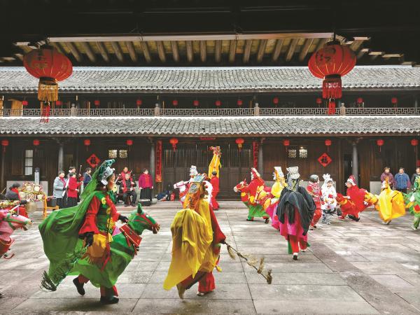 来到走马楼天井,跑马灯展演的热闹瞬间将人裹进新春氛围,这也是古镇最具特色的“马”味民俗。