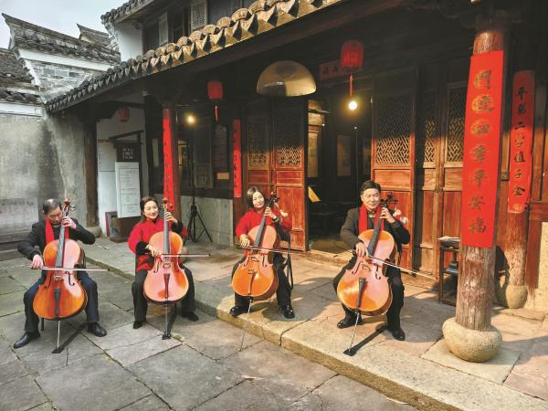 “马年在这儿演奏,感觉特别有意义,希望用琴声为古镇的马年新春添一份美好。”大提琴手陈女士说。