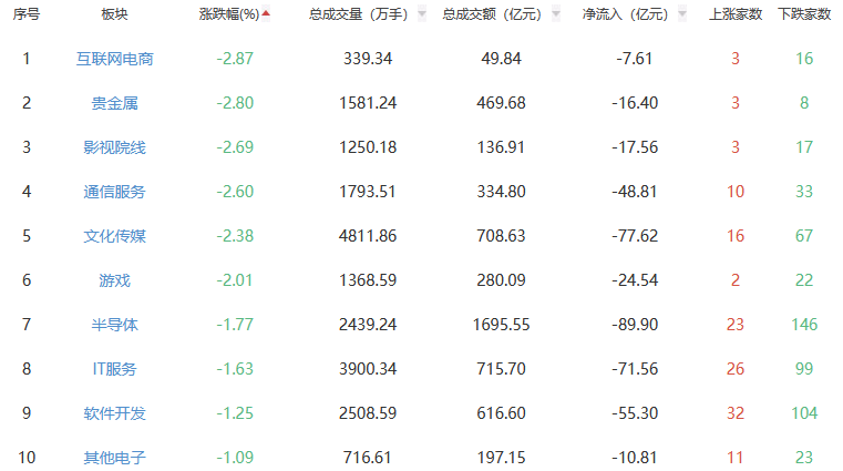 行业板块方面,煤炭开采加工、光伏设备、机场航运等板块涨幅居前,互联网电商、贵金属、影视院线等板块跌幅居前。