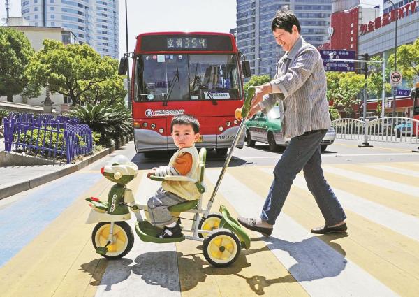 公交车经过熙熙攘攘的城隍庙。