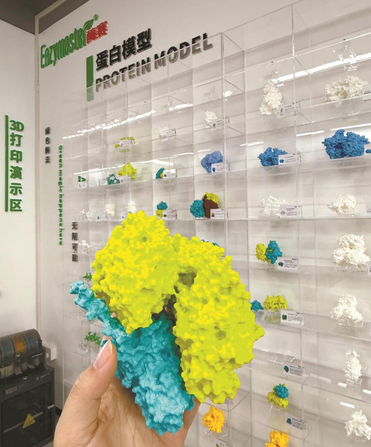“酶赛生物”3D打印出的蛋白模型。记者 严瑾 摄