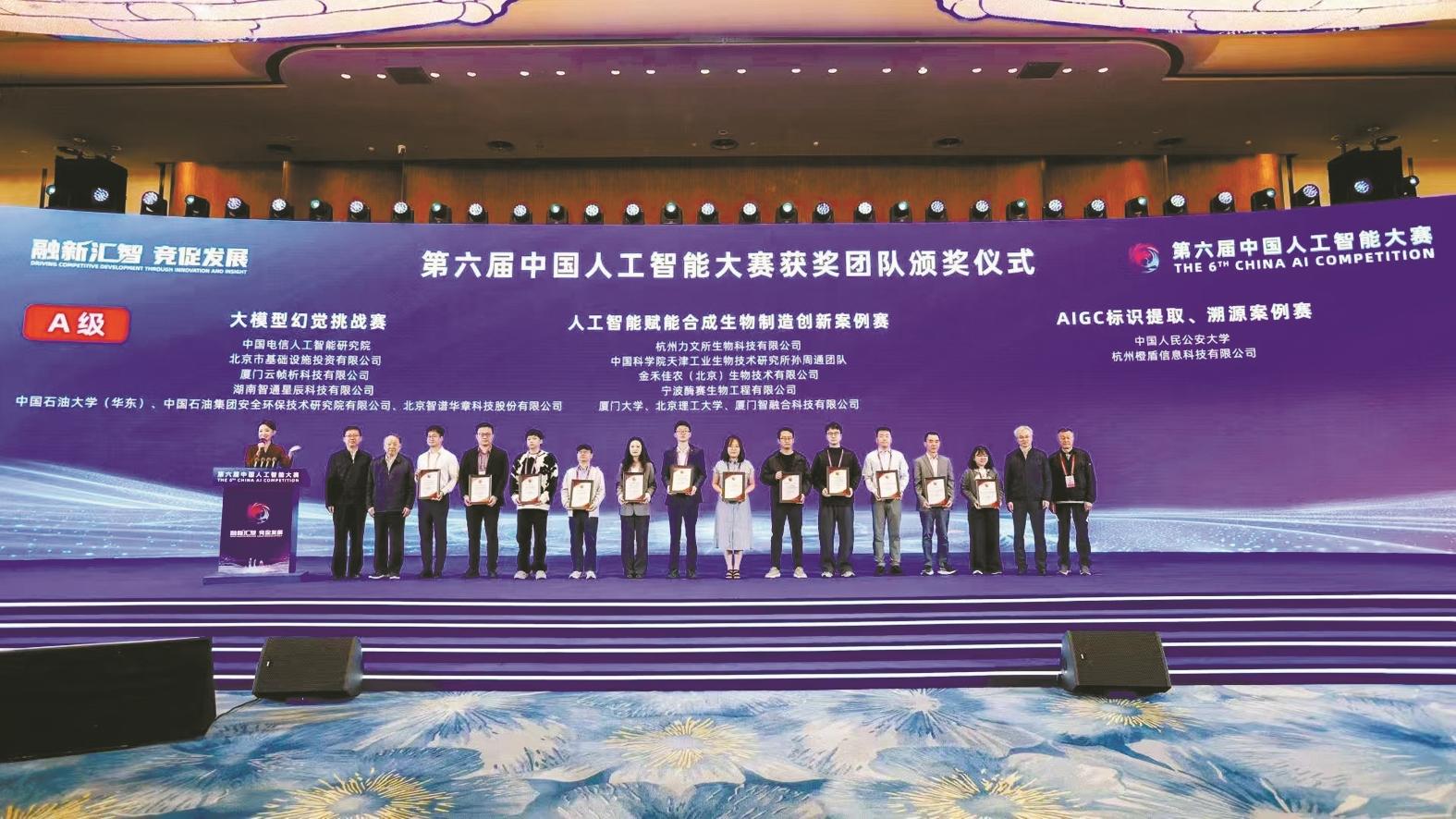 “酶赛生物”在第六届中国人工智能大赛上获奖。通讯员供图