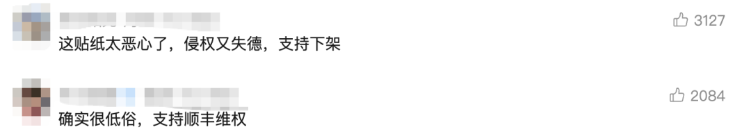 有网友表示,贴纸用谐音梗恶搞“怀孕”是一种低俗趣味,会让人感到不适,“支持顺丰维权”。
