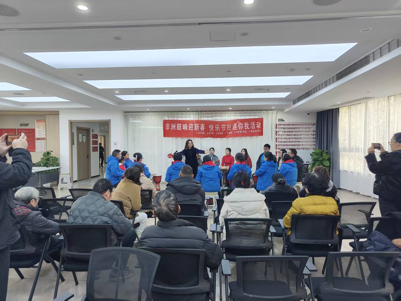 “咚咚咚、哒哒哒……”感心动耳、直击心灵的非洲鼓鼓声在江北区庄桥街道天沁社区活动室内回响,鼓声时而欢快激昂、时而舒缓如诉。2月3日下午,江北区“精灵”鼓社的学员用一场名为“非洲鼓响迎新春快乐节拍连你我”的社区专场演出,与社区居民共同迎接新春。