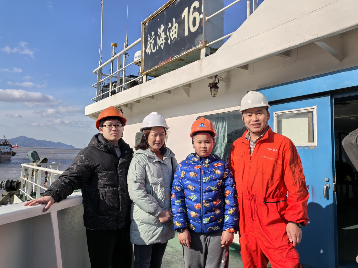 9日中午,他带着妻儿和船员们,在大榭石化餐厅提前吃了一顿温馨的年饭。午后,老陈领着一家人登上“航海油16”轮,从船头的缆绳到驾驶室桌上的航海图,他一一介绍,语气里是平日少有的温柔。