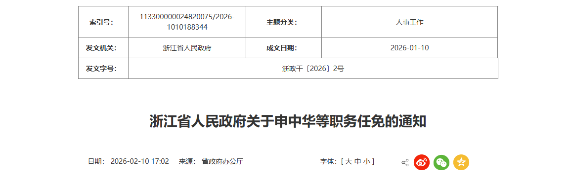 申中华任浙江省人民政府台湾事务办公室副主任;