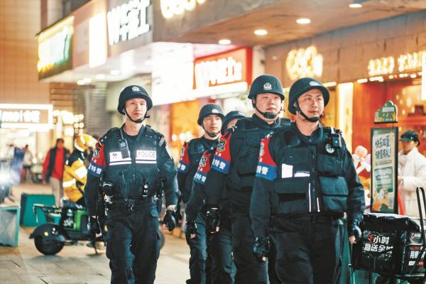 慈溪民辅警开展武装巡逻,确保街面平安。(慈溪公安供图)
