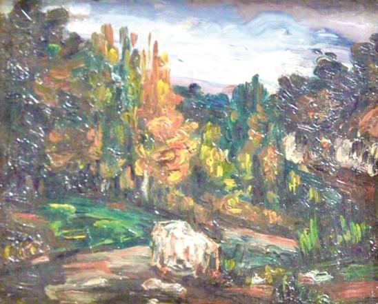 布面油画《风景》,差不多也是同时期的创作,画面中的岩石、树木与地表不再被明确区分,形成一种近乎雕塑感的画面结构,显示出塞尚对“形式”的自觉追求。