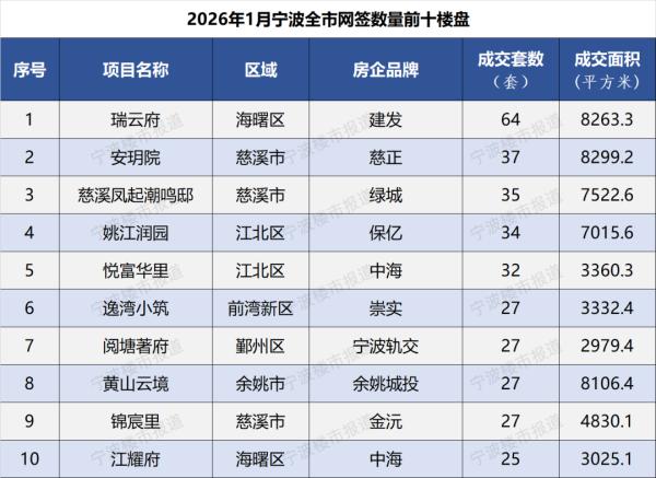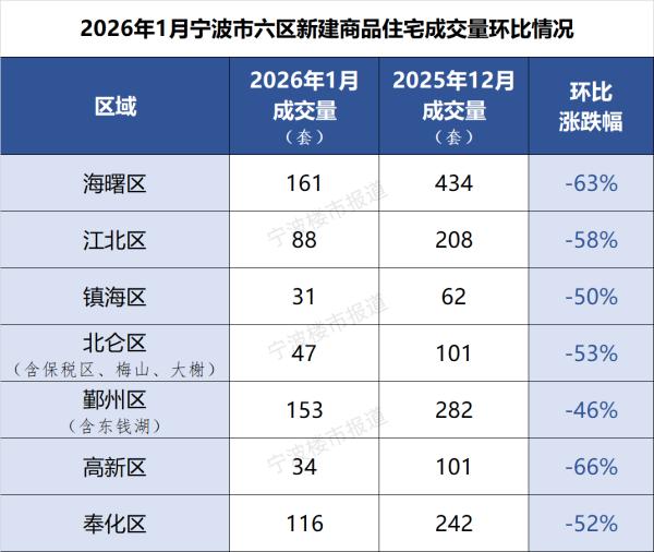 宁波市房产市场管理中心昨天发布今年首月全市住宅成交数据。