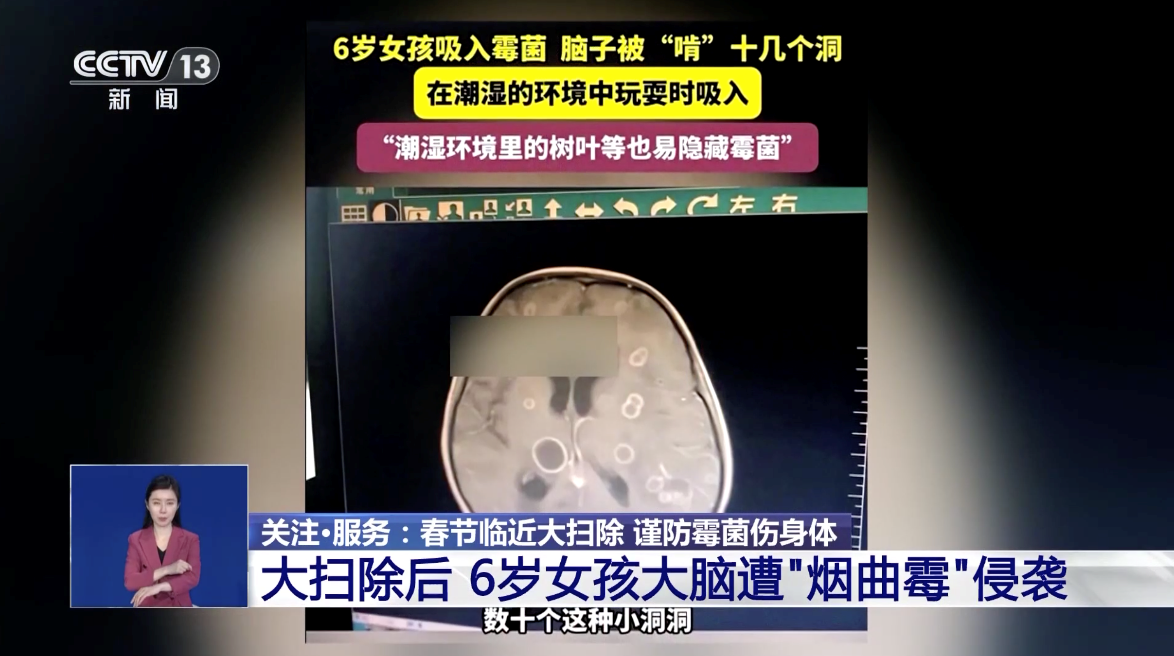 近日,有一条新闻引发网友关注:河南郑州一名6岁女孩跟随家人对老家房子进行清扫,随后就开始持续发烧。经医院检查,发现其脑部被真菌侵蚀出很多个“空洞”。罪魁祸首,就是老房子里霉变粉尘中的“烟曲霉”。