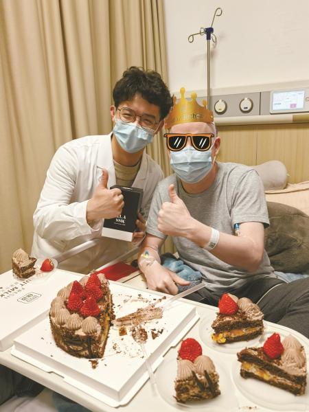 住进无菌舱后,在医护人员的悉心照料下,David的身体状况已经调整到了不错的状态。接受造血干细胞移植前,医护人员还在病房里为他提前庆祝了生日。“在无菌舱里他能吃能喝,精神比刚来住院时好多了。”医护人员欣慰地表示。