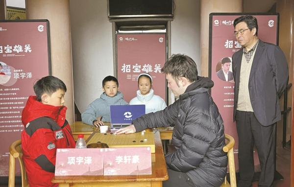 2月24日下午,明州十局围棋赛第九局“招宝雄关”在镇海招宝山鳌柱塔进行,宁波围棋小将项宇泽业余6段受让2子挑战世界冠军李轩豪九段,结果败下阵来。至此,“明州十局”已完成九局较量。