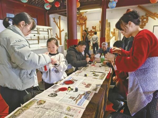 正月初四至初六,保国寺木作工具馆内红纸翻飞、墨香氤氲,“古风手作·福韵DIY”体验区每日排起长队。家长与孩子伏案执剪,在非遗传承人指导下剪福字、拓吉祥纹样,将新春祈愿凝于方寸之间。