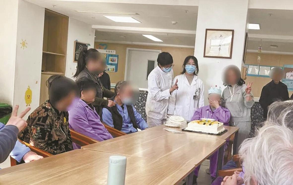值得一提的是,住院期间,张奶奶还过了一个很特别的生日派对。当时,小玲告诉医护人员:“以前,我妈每年生日都会煮鸡蛋给我吃,今年我想给她买个蛋糕。”于是,医护人员请来病区的其他老人,共同给张奶奶庆生。