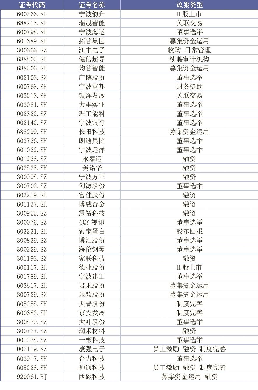从会议内容看,宁波上市公司普遍聚焦资本效能提升与治理结构完善,通过多项核心议案的落地,为新一年度高质量发展奠定基础。