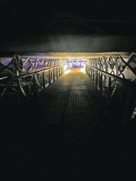 云龙大桥下方廊道一片漆黑。(仇龙杰 摄)