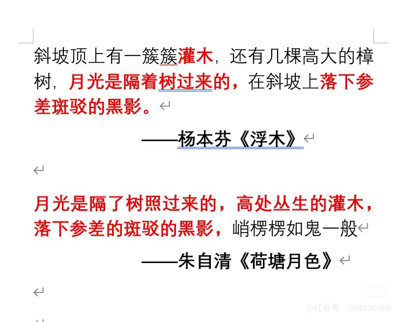根据“抒情的森林”在社交平台发出的对比图,其中明确标注了杨本芬作品涉嫌“抄袭”的段落和句式,其中涉及句式结构、意象选用、细节描写等多个层面。