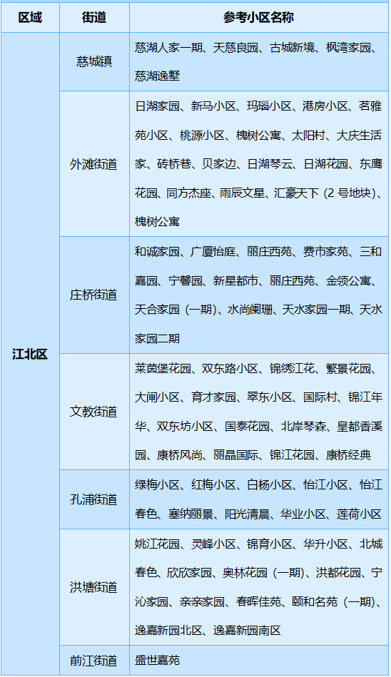 需要提醒的是,这份小区清单仅供参考,最终是否符合建成时间要求,以审核为准;其他位于江北区内、但所在小区未在清单内或无物业管理的建成于2010年1月1日前的商品住房,也可在线上提交申请,经相关部门审核确认后,纳入拟收购范围。