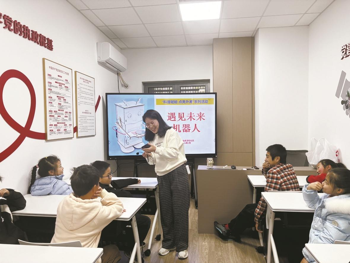 2月27日下午,江北区外滩街道区科协在浮石社区党群服务中心开展“遇见未来:机器人”科普活动。
