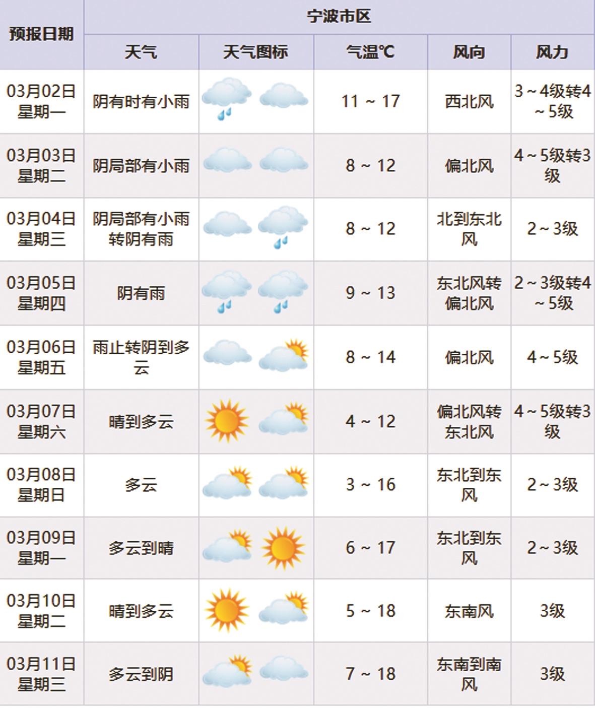 新的一周,恰逢元宵节(3月3日)和惊蛰节气(3月5日)。市气象台最新预报显示,这一周宁波的天气将是雨日偏多,晴日难得。阴雨缠绵,冷空气又携风而来,把刚抬头的春意又压回了几分。