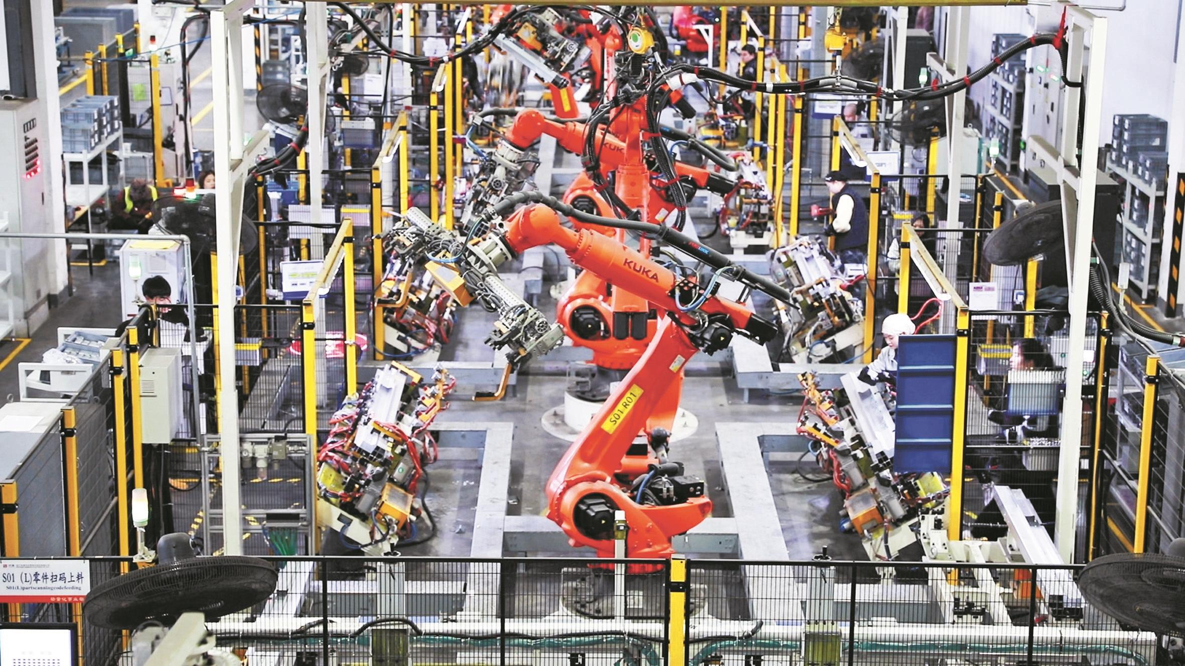29条橘黄色机械臂协同作业,精准完成抓取、焊接、组装等工序……昨日,在位于我市的浙江祥晋汽车零部件股份有限公司生产车间内,新能源汽车门槛梁智能化生产线马力全开。目前,这条生产线一天能生产800余套新能源汽车门槛梁。(甬派客户端宁波日报 陈章升 虞金辉 景士杰 摄)